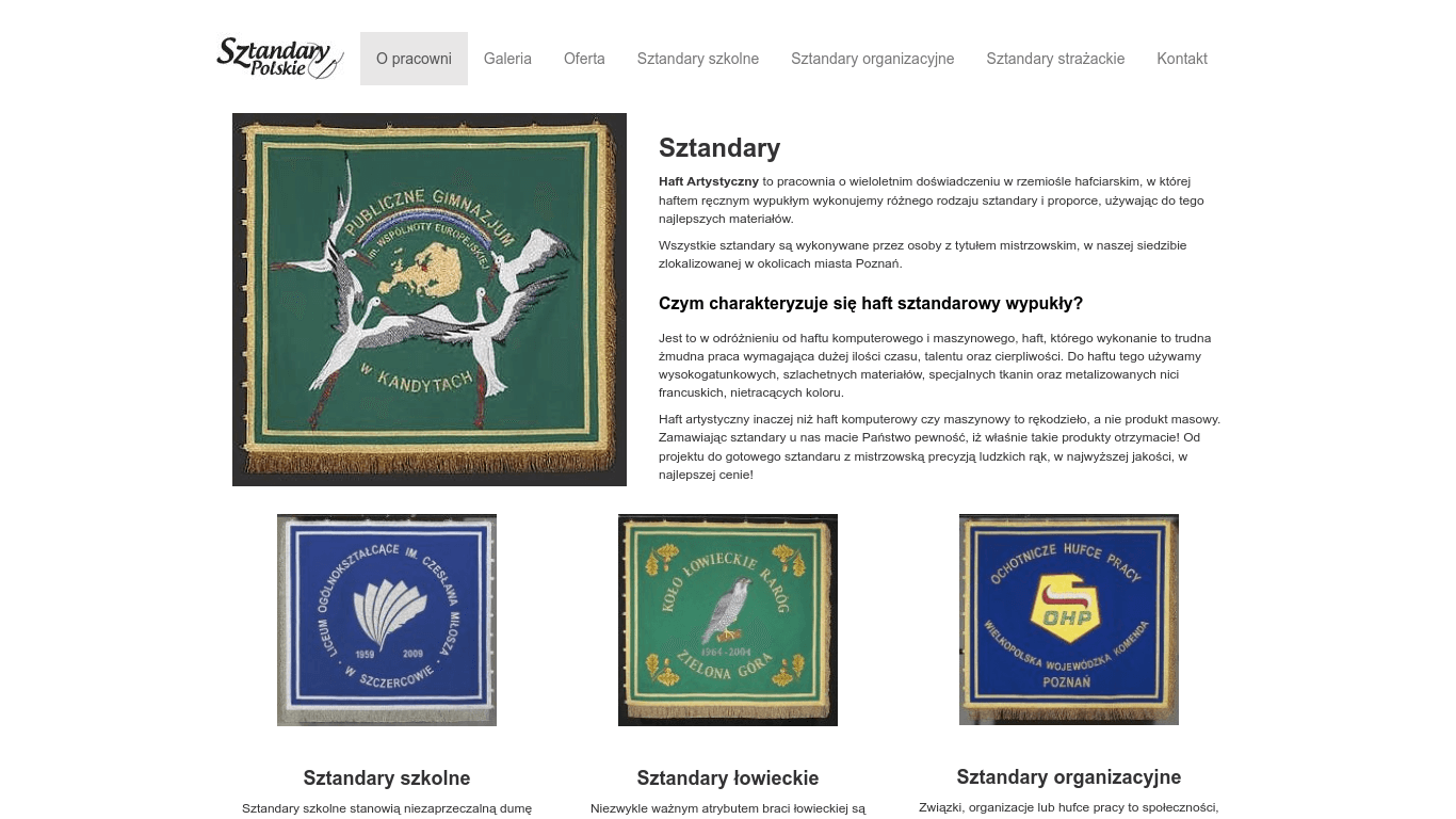 Klienci, których interesują sztandary strażackie, mogą zamówić tego rodzaju produkty u doświadczonych rzemieślników z pracowni Haftu Artystycznego, należącej do marki Sztandary Polskie. Firma specjalizuje się bowiem w projektowaniu oraz wykonywaniu sztandarów z ręcznie haftowanymi elementami, nadającym grafikom trójwymiarowości i eleganckiego wyglądu. Marka oferuje również wyjątkowe akcesoria, takie jak szarfy, rękawiczki, drzewce z okuciami oraz gwoździe pamiątkowe i dedykowane pokrowce, jednocześnie chętnie doradzając klientom, aby zapewnić im satysfakcję z zakupu.